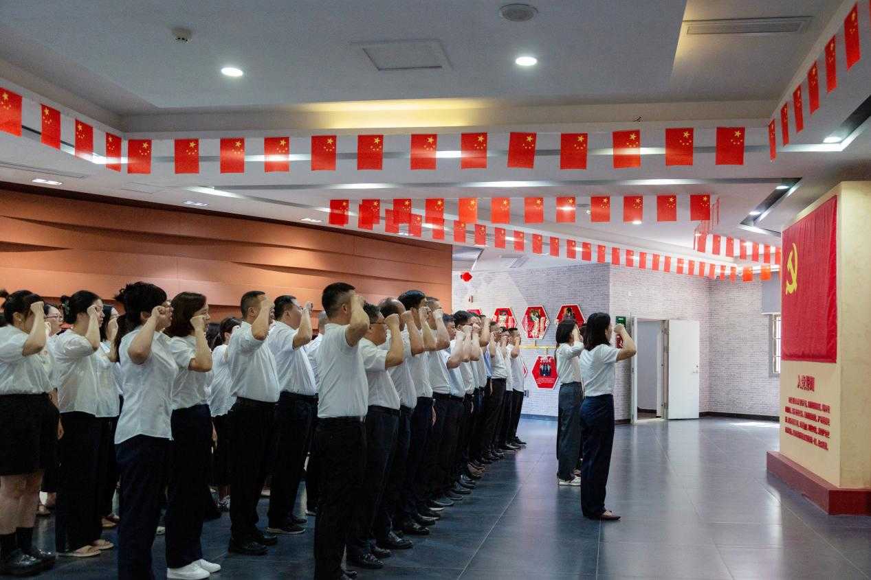 在新四軍第五師歷史陳列館,面向鮮紅的黨旗,在領誓人的帶領下,新黨員進行了莊嚴的入黨宣誓,全體黨員重溫入黨誓詞。一字一句,激勵著每一位黨員不忘初心、砥礪前行,將大別山精神深深刻入骨髓,化作推動鹽業(yè)事業(yè)蓬勃發(fā)展的不竭動力。??????????????????????????????????