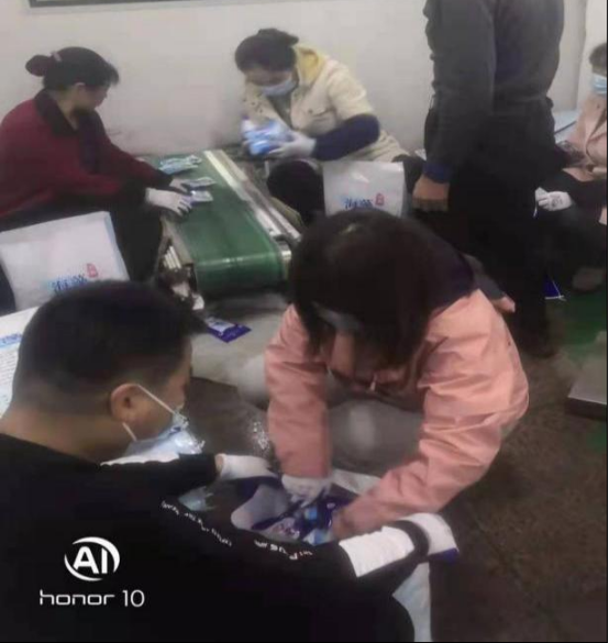 為期六天的支援生產(chǎn),公司領(lǐng)導(dǎo)率先垂范,黨員干部勇?lián)袌?jiān),職工踴躍參與。大家同藍(lán)天員工在生產(chǎn)中互相學(xué)習(xí)、配合,撿包、封包、堆碼,雖然忙碌,但秩序井然;雖然汗水浸濕了衣裳,但熱情在心中,笑容在臉上。